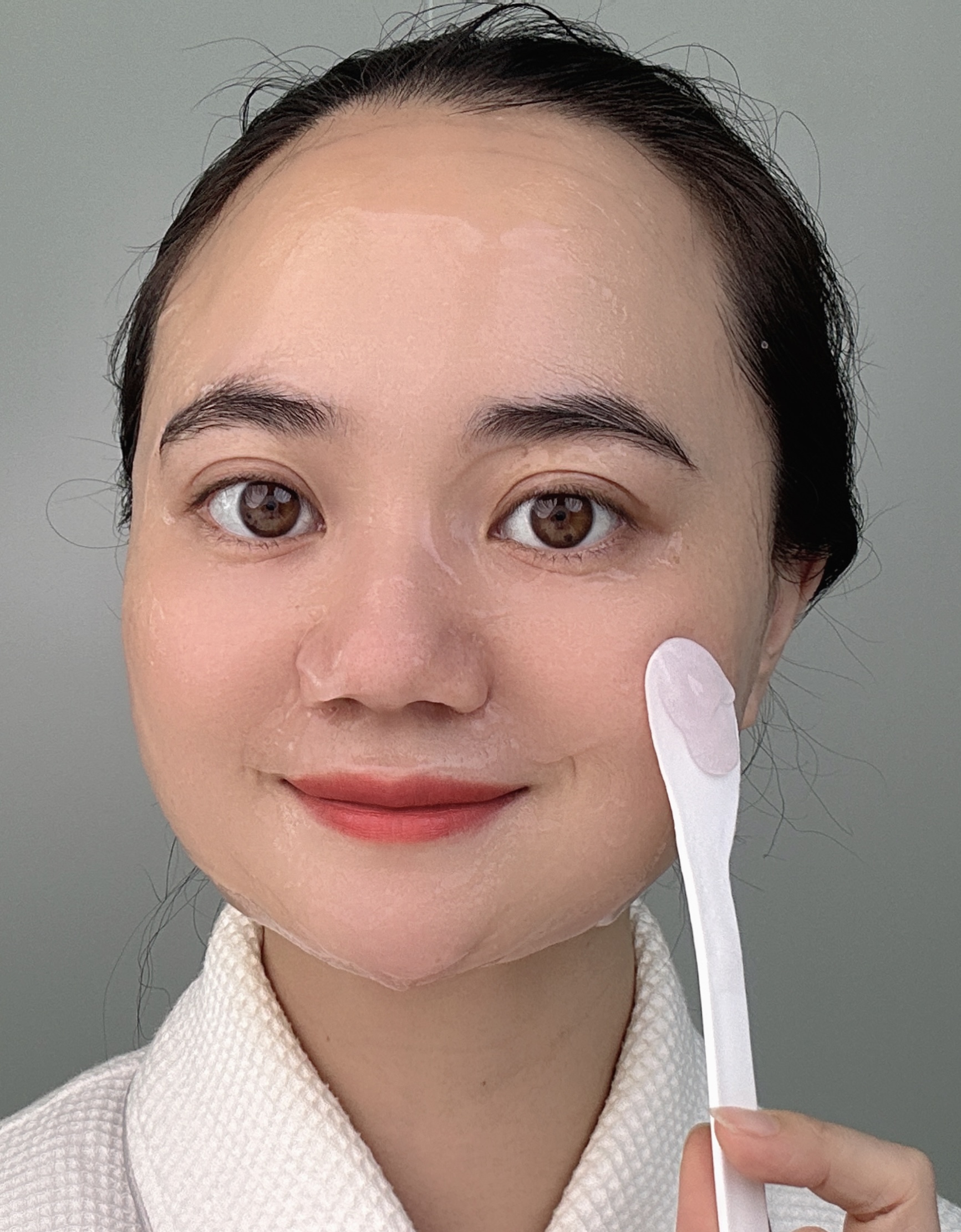 6、用指尖轻轻按摩促使面膜吸收后用清水洗掉即可