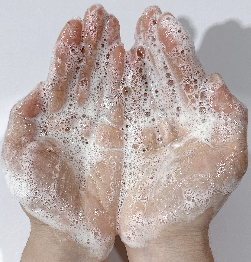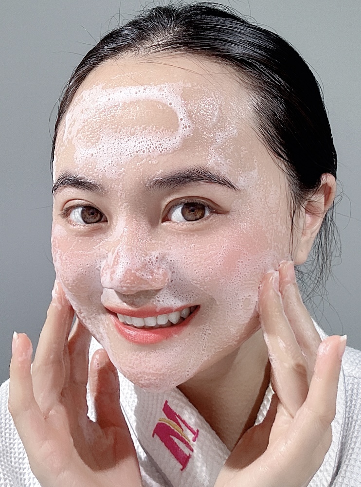 4、将泡沫均匀的抹到脸上搓洗干净后,用清水洗掉即可