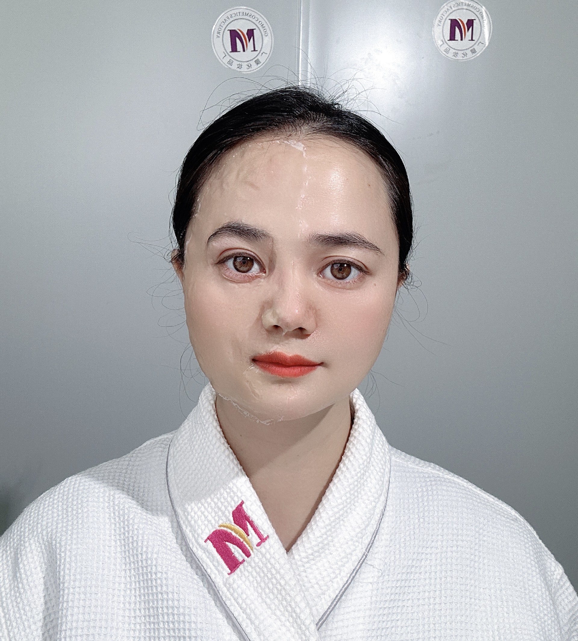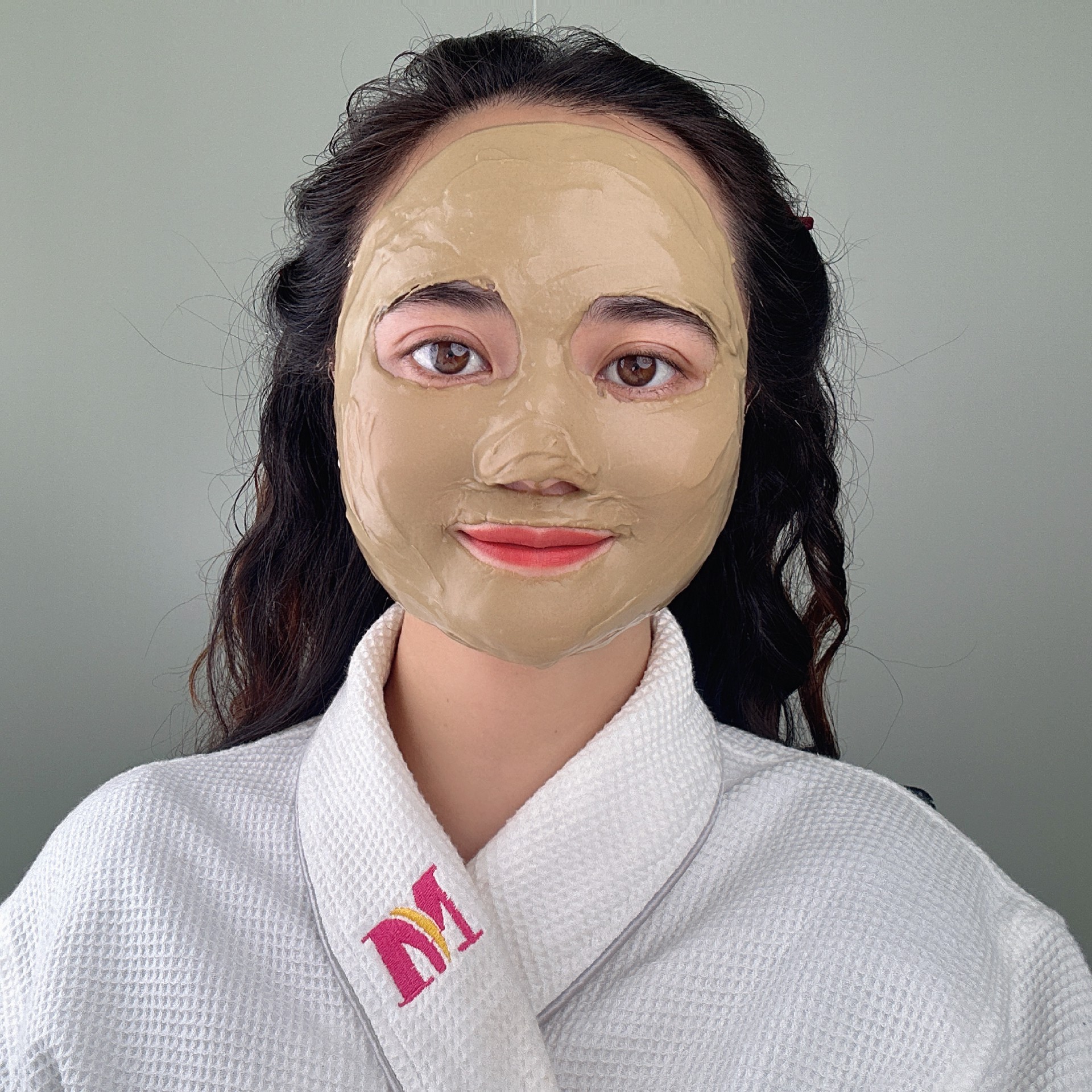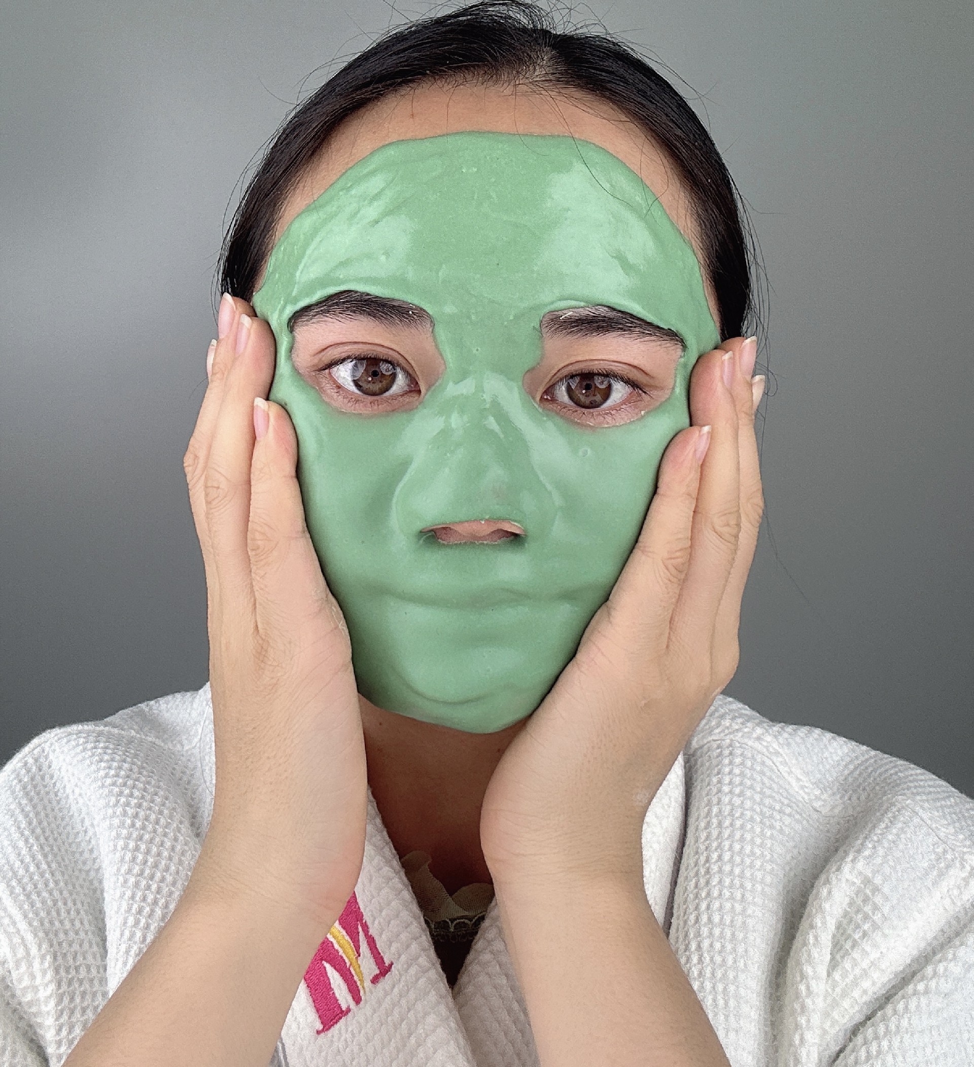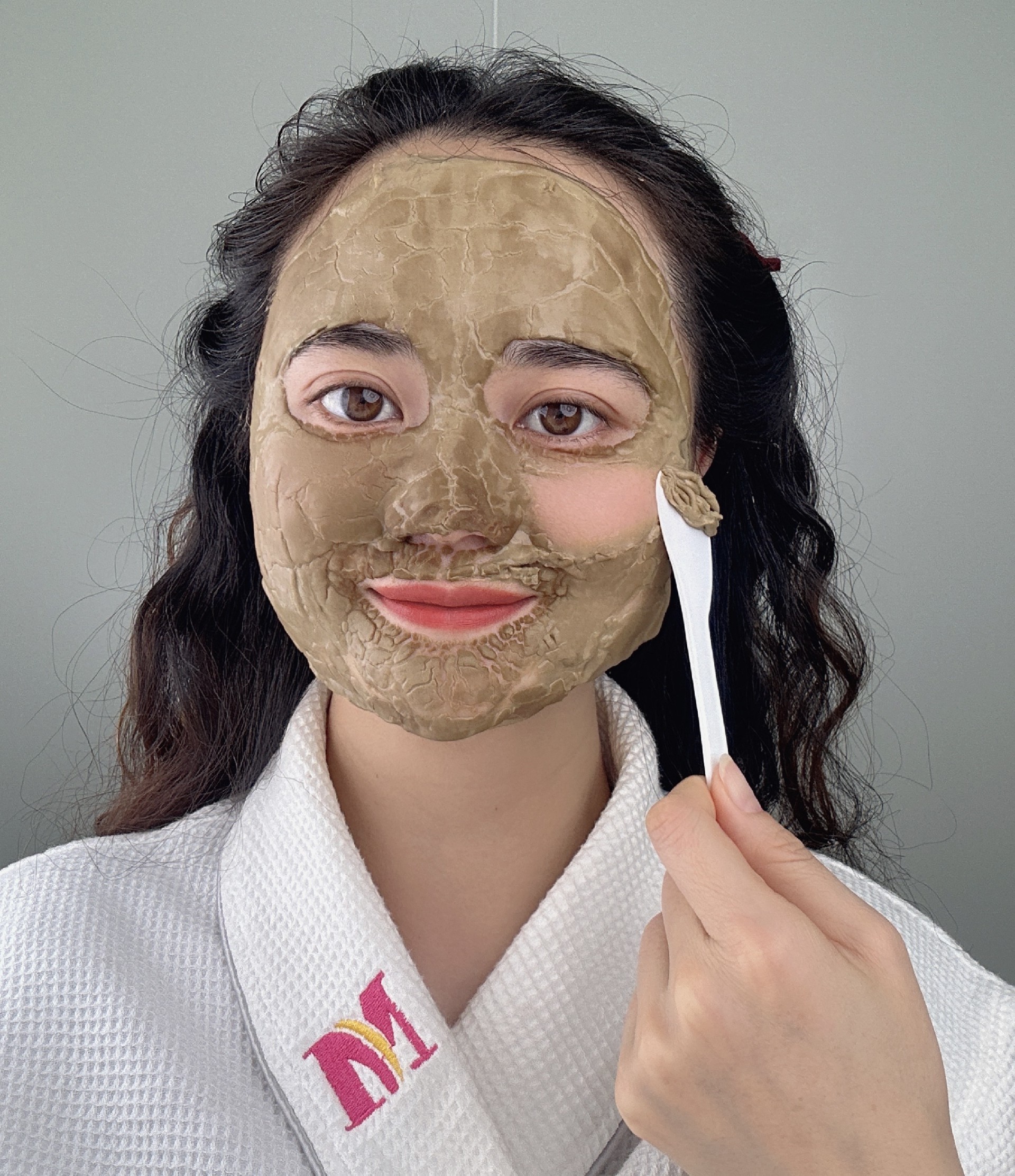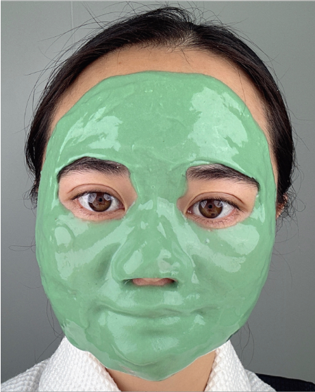 4、3分钟之内把搅拌好的面膜均匀涂抹到脸上,静待15-20分钟面膜在脸上由初凝到凝固过程。