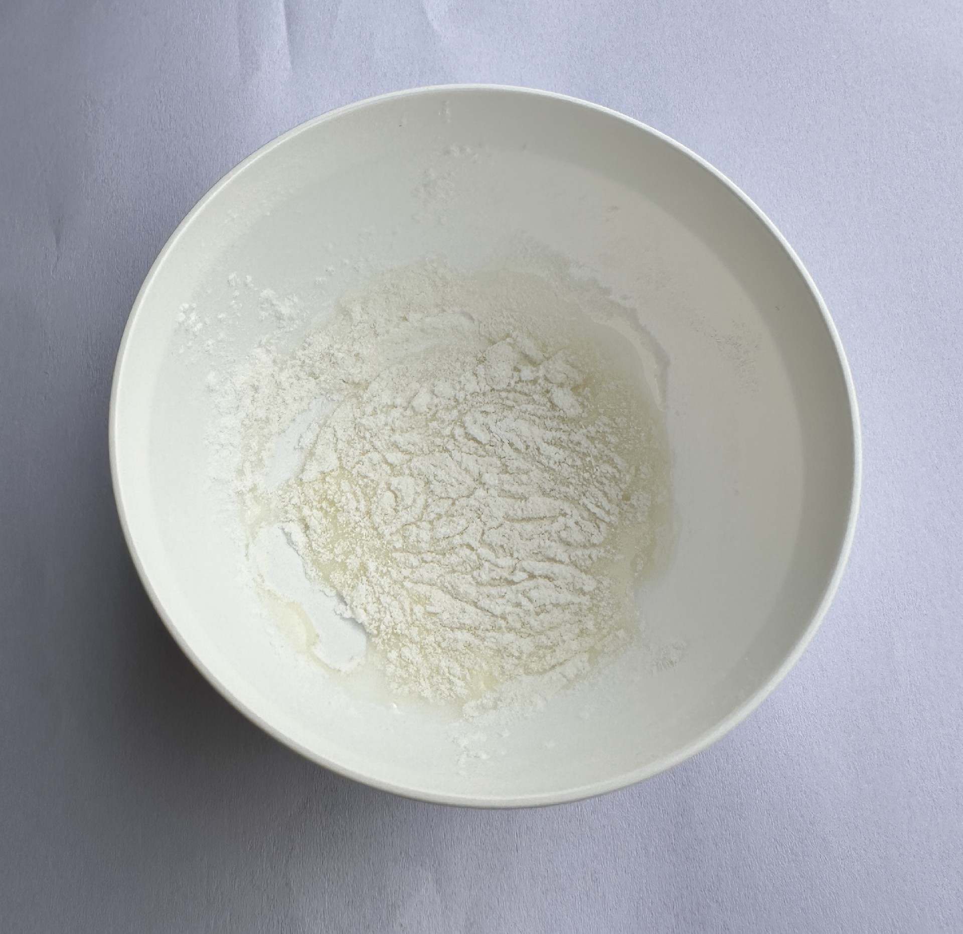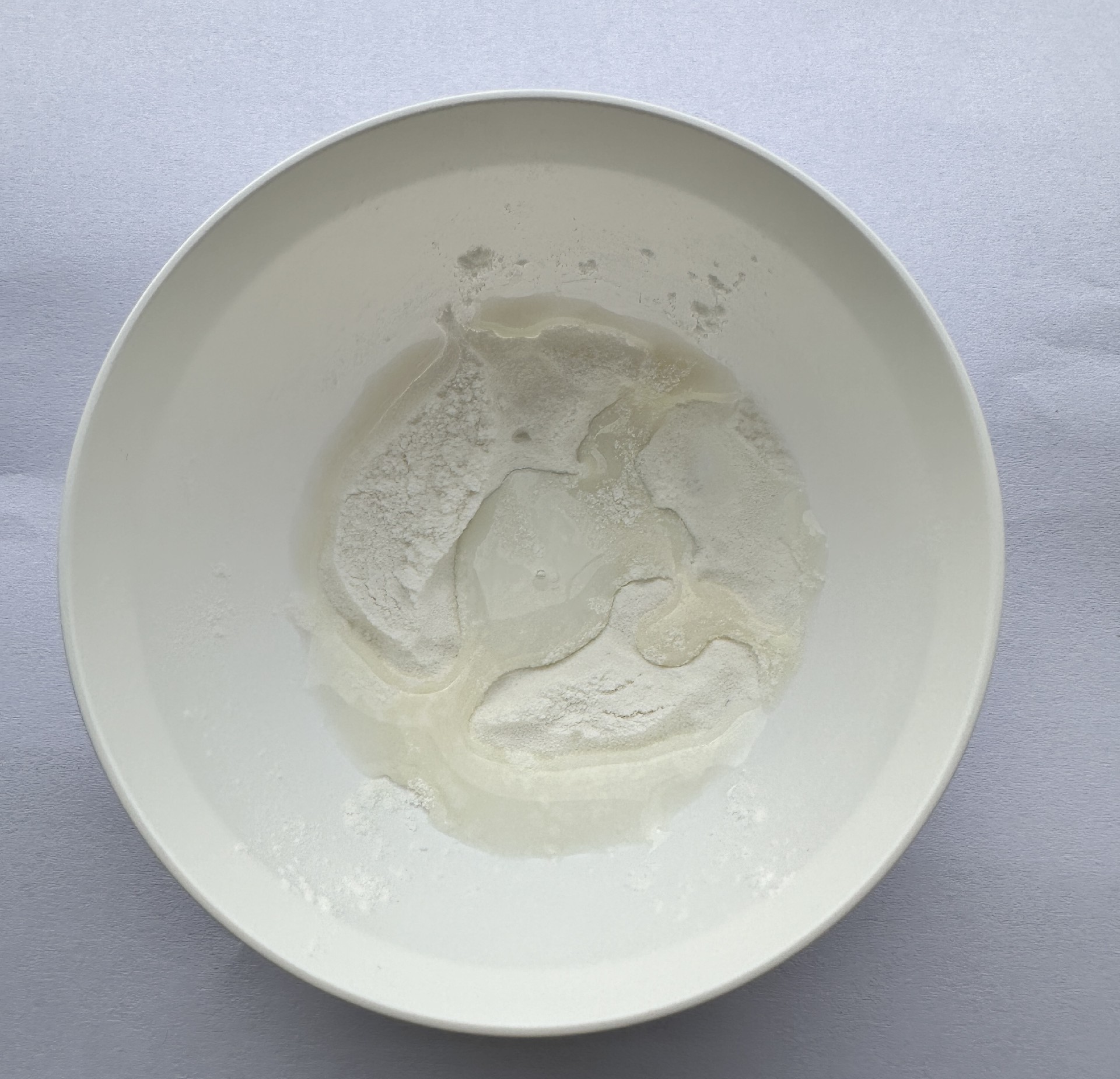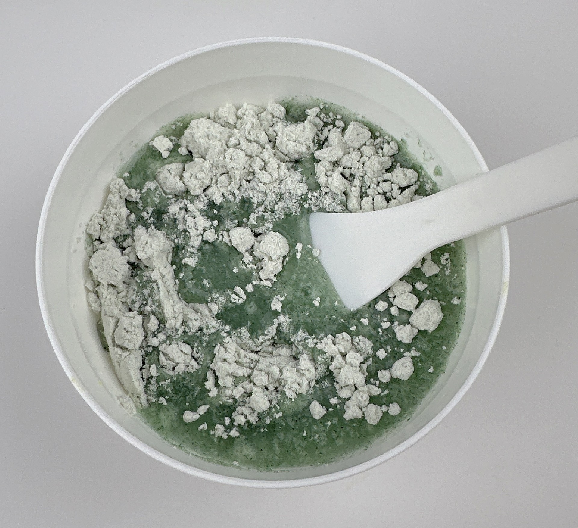 3、再加入13克水把面膜粉均匀搅拌成糊状