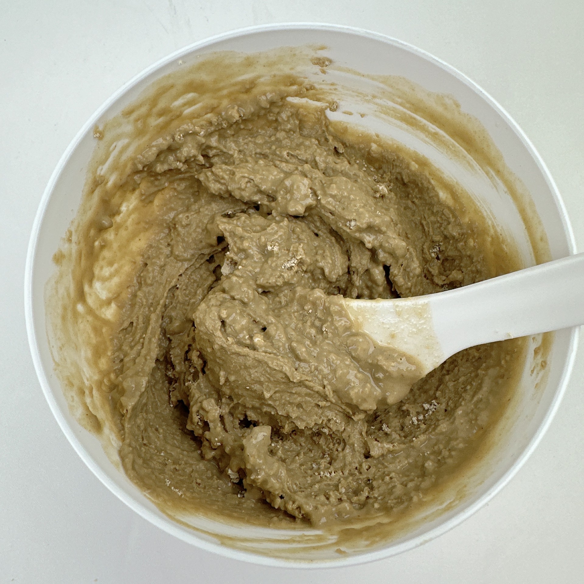 3、一分钟内快速顺时针搅拌88下,得到一个均匀糊状的面膜